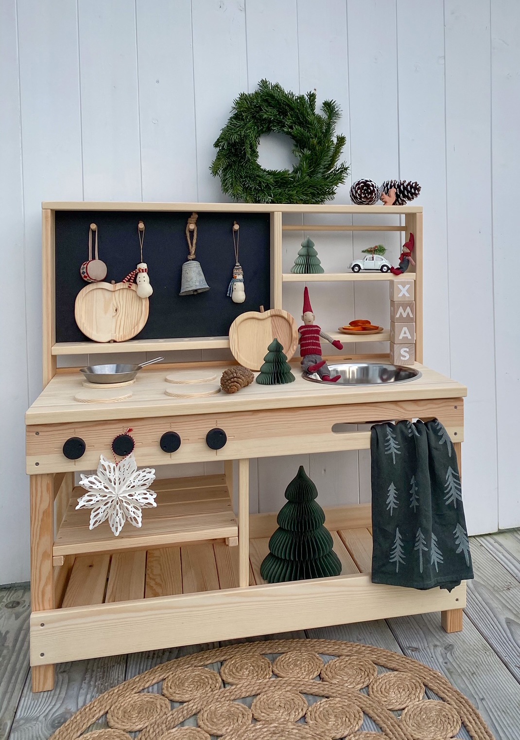 Schöne Kinderküche aus Holz als Weihnachtsgeschenk